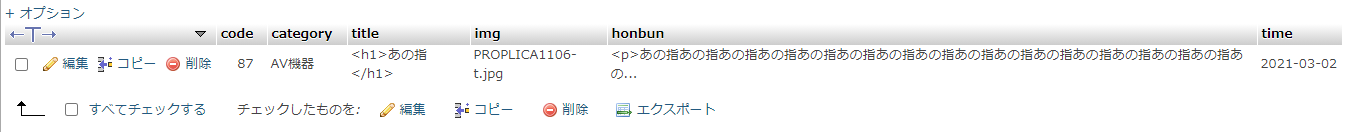先ほどと同じく、postデータをエスケープしていないのは、htmlタグと解釈させてデータベースに保存させたい為です。