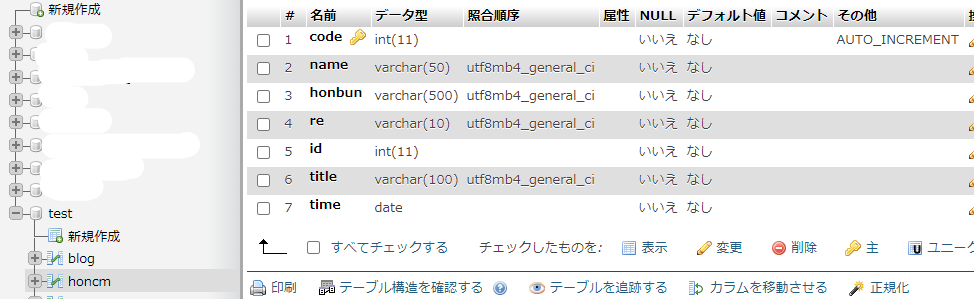 コメント投稿画面は、公開用のページで作成しますが、仮テーブルはこの回で作成しておこうと思います。