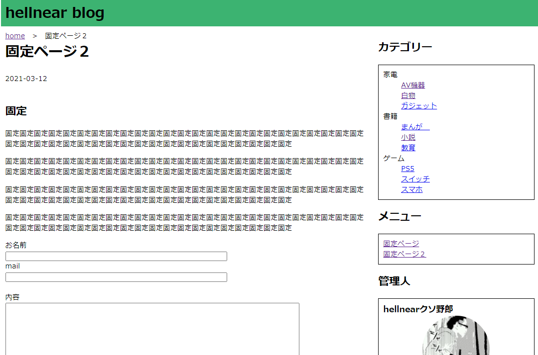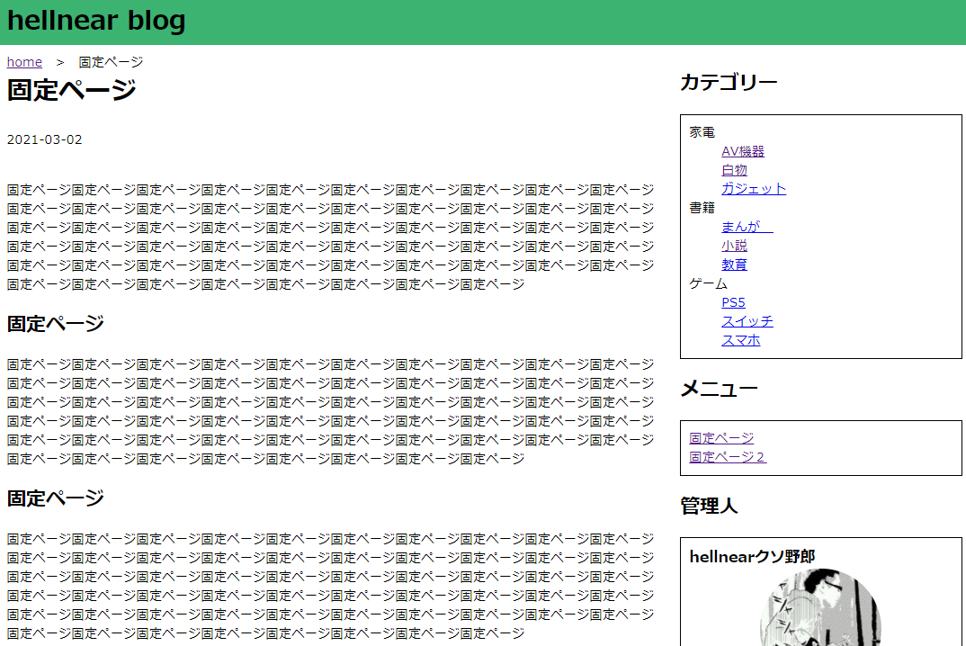 ファイルを作成後、固定記事へアクセスすればこんな感じになってるはずです。↓
