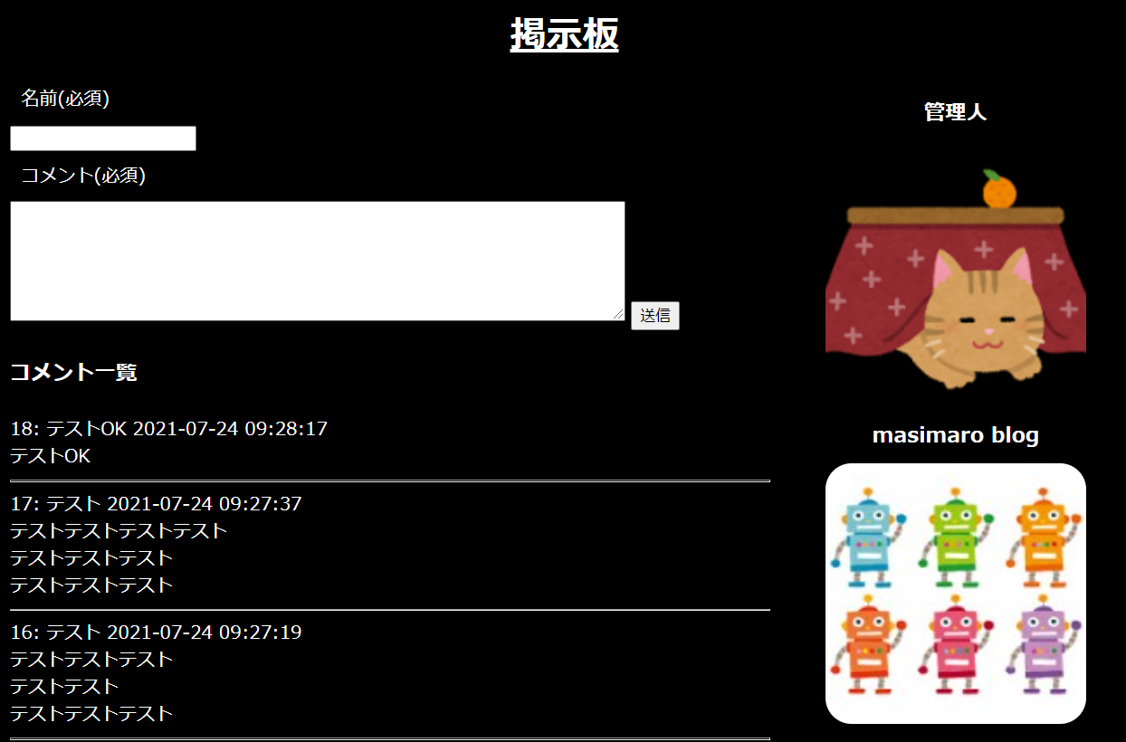 なお、無料サーバーにて完成した掲示板を公開しております。↓