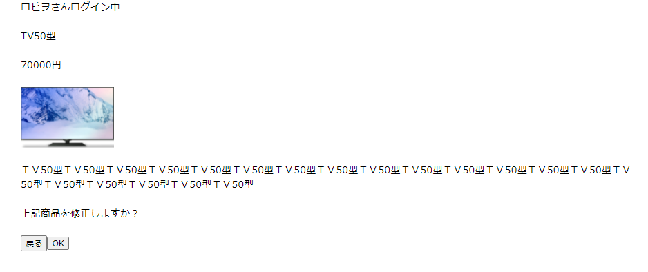 このページでは入力された内容に、空白や半角数字以外の入力、画像のサイズオーバーがあればそのコメントと前のページに戻るように誘導し、問題なければ修正しますか?のコメントを表示させてsubmitで値をpostさせています。