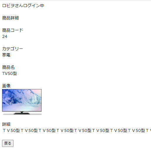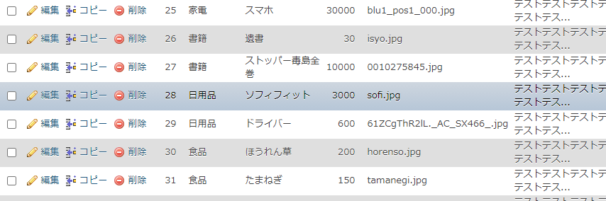 このページでは、選択した商品の削除を実行し、データベース上から削除する画面になります。また、画像が登録されていれば保存先のgazouフォルダから画像も消去させます。